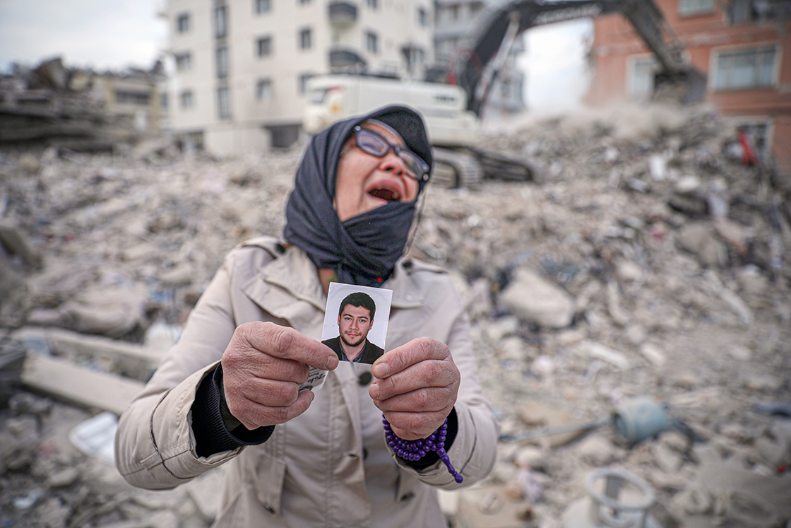 Hatay'da, Kahramanmaraş merkezli 7,7 ve 7,6 büyüklüğündeki depremlerden etkilenen 80 binanın enkazının kaldırılmasına başlandı. Depremlerde merkez Antakya ilçesindeki Akevler, General Şükrü Kanatlı, Cebrail, Cumhuriyet, Meydan, Emek, Gazi mahallerinde zarar gören 80 binanın bulunduğu alanlardaki moloz yığınları iş makineleriyle kamyonlara yüklenerek belirlenen noktalara taşınıyor. Çalışmaları izleyen bir kadın, yıkıntılar arasında yakınının fotoğrafını bulunca gözyaşlarına hakim olamadı. ( Erhan Sevenler - Anadolu Ajansı )