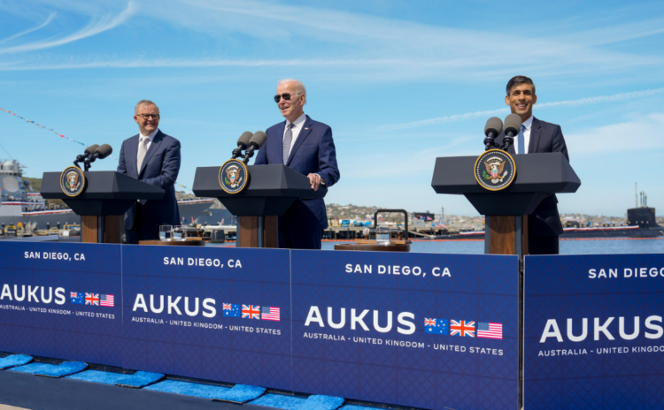 Avustralya, Birleşik Krallık ve ABD’nin 2021’in eylül ayında duyurduğu AUKUS paktı ilk günden beri Çin yönetiminin tepkisini çekse de üç ülkenin işbirliği sürüyor. ABD’de yapılan buluşmada üç ülkenin lideri bir araya gelerek anlaşmanın detayları ve geldiği aşamayı açıkladı. Buna göre Avustralya, nükleer enerjiyle çalışan ilk denizaltılarını alacak ve başlangıçta bu sayı en az 3 olacak.