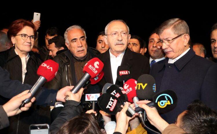 Kılıçdaroğlu; Akşener ve Davutoğlu ile birlikte sel bölgesini ziyaret etti. CHP Genel Başkanı ve Millet İttifakı Cumhurbaşkanı Adayı Kemal Kılıçdaroğlu, İyi Parti Genel Başkanı Meral Akşener ve Gelecek Partisi Genel Başkanı Ahmet Davutoğlu Şanlıurfa’da sel bölgesini ziyaret etti.