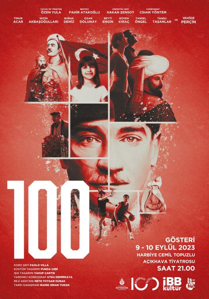 .📌 100/İBB Kültür Daire Başkanlığı: Cumhuriyet’in 100 yıllık yolculuğunu, 2 bin yıllık efsaneleşmiş Anadolu ve Türk tarihinden ilhamla anlatan gösterinin müzikleri Fahir Atakoğlu’nun, metni ve rejisi Özen Yula’nın imzasını taşıyor. Oyunda tarihe damga vurmuş karakterleri Timur Acar, Sezin Akbaşoğulları, Burak Deniz, Ozan Dolunay, Beyti Engin, Güven Kıraç, Tansel Öngel, Ahmet Tansu Taşanlar ve Vahide Perçin canlandırıyor. Bu gece ve yarın gece saat 21.00’de Harbiye Cemil Topuzlu Açıkhava Tiyatrosu’nda.