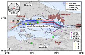 Kuzey Anadolu Fayı (KAF) Marmara Denizi’ne İzmit Körfezinden giriyor, İstanbul’u paralel takip edip Tekirdağ’dan karaya çıkıyor.