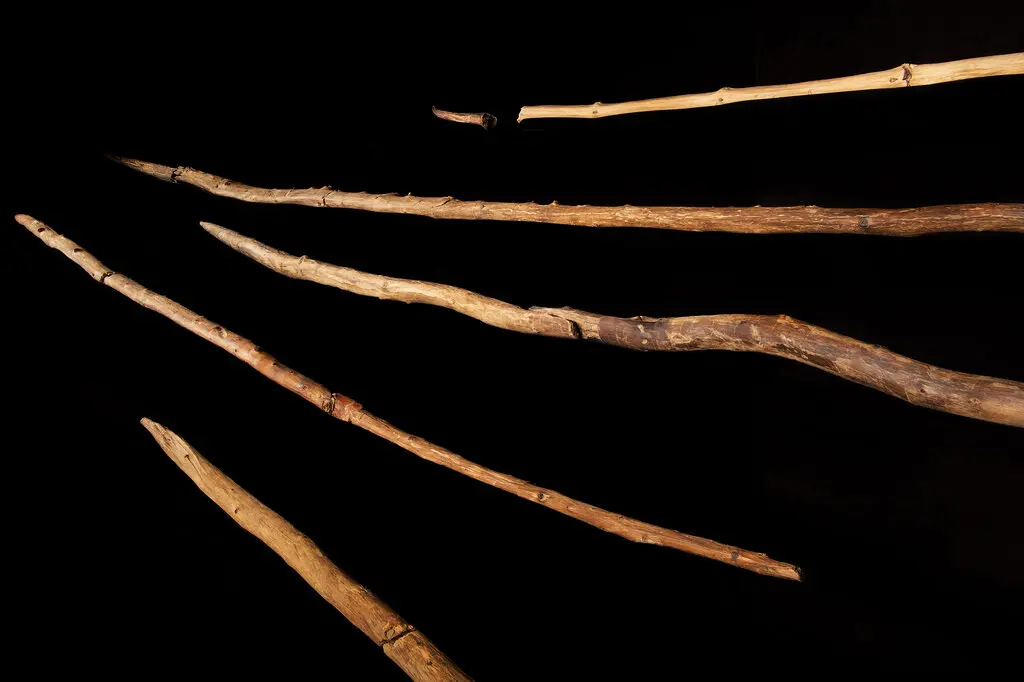 Eşyanın bulunduğu göl kıyısında ne bir ladin ne de çam ağacı olmadığı için araştırmacılar ağaçların iki ya da üç mil ötedeki bir dağda kesildiğini düşünüyor. Mızrakları yakından inceleyen ekip Taş Devri insanlarının ahşap işleme çalışmalarını dikkatlice planladığını gördü. Kabukları soyuyor, dalları çıkarıyor, mızrak başını keskinleştiriyor ve odunu ateşte sertleştiriyorlardı. Yani ahşap aletlerin yapımı için taş aletlerde gördüğümüzden daha karmaşık çalışmalar yapılıyordu. En şaşırtıcı olansa bazı mızrak uçlarının kırıldıktan ya da köreldikten sonra bilenmiş olmasıydı. Kırılmış bazı silahlar da yontulup cilalanarak yeniden kullanılıyordu. Yani taş aletlerden çok daha karmaşık bir süreç söz konusuydu.