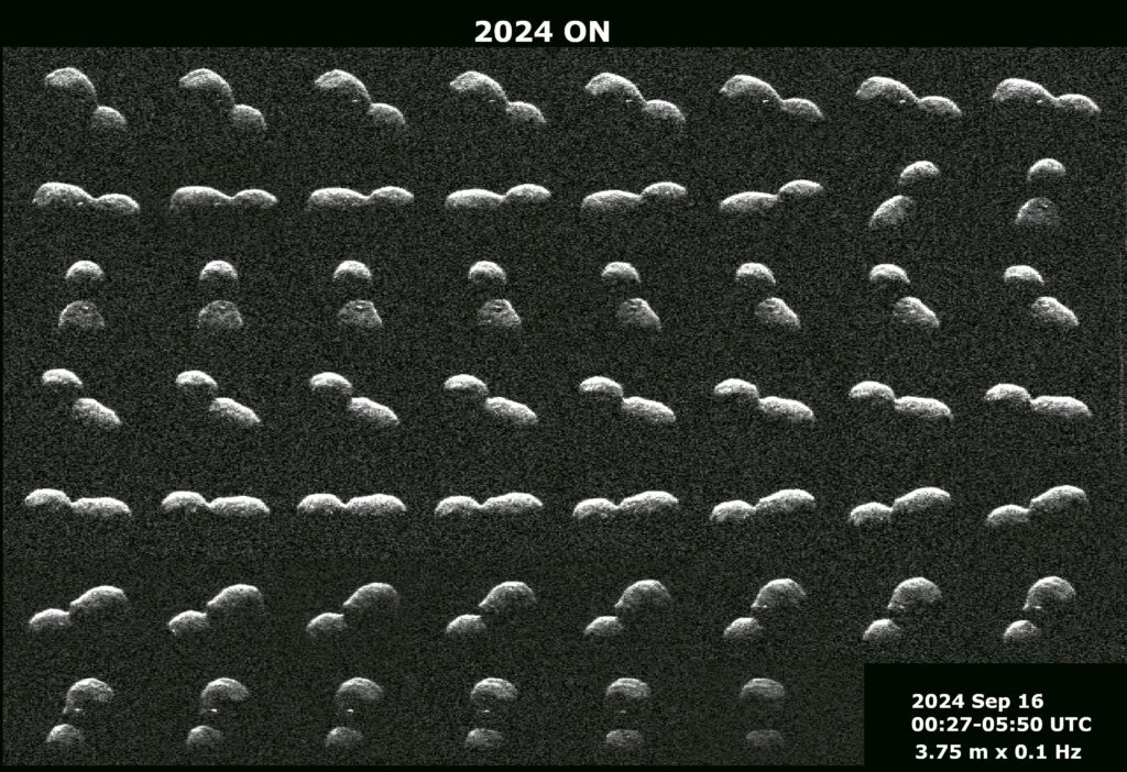 🥜Aşağıda gördüğünüz görüntü bir yer fıstığına ait değil. Dünya’ya yakın olduğu için “potansiyel olarak tehlikeli” olarak sınıflandırılmış bir asteroit! NASA’nın Jet İtki Laboratuvarı’na göre 2024 ON olarak bilinen bu cisim, 16 Eylül’de Dünya’nın 999 bin kilometre yakınına geldi. Bu mesafe Ay ile olan mesafenin 2,6 katı ediyor. Yani yakın olsa da rahatsız edecek ölçüde değil. İlk olarak temmuz ayında Hawaii’deki ATLAS tarafından fark edilen bu asteroit anlayacağınız üzere epey büyük. Uzunlamasına 350 metre olan asteroit eğer bir gökdelen olsaydı Empire State Binası kadar yüksek olurdu. Yer fıstığı gibi görünmesinin sebebi de bunun aslında “temas ikilisi” denen şey olmasından kaynaklanıyor. Yani daha büyük bir cisim oluşturmak için birbirine dokunan iki küçük cismi görüyoruz aslında.
