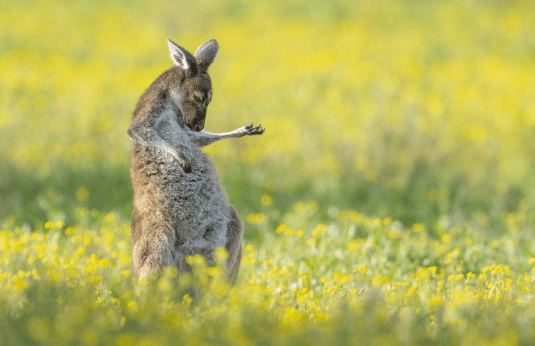 Şimdi de benim en sevdiğim yarışmalardan bir diğerine geçelim. Birleşik Krallık merkezli Komik Vahşi Doğa Fotoğraf Ödülleri’nin bu sene kazananı gitar çalıyormuş gibi poz kesen kanguru oldu. Bu dişi kangurunun fotoğrafını Jason Moore, Avustralya’nın Perth banliyösündeki bir kır çiçeği tarlasında çekmiş. Onun ödülü 3 bin dolar olmadı ama el yapımı bir kupa, fotoğraf çantası ve Kenya’nın Maasai Mara bölgesine bir haftalık safari tatili kazandı. Böylelikle bize daha başka eğlenceli fotoğraflar çekebilir. Bu yarışmaya da 85 ülkeden 1800 kişi katılmış bu arada. Kategori kazananlarının fotoğraflarına buradan ulaşabilirsiniz. Benim favorim açıkçası kapak fotoğrafına eklediğim fotoğraf oldu.