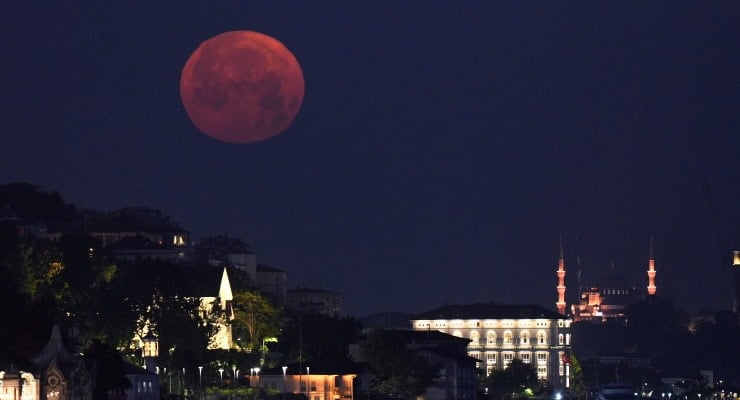 İstanbul Boğazı ve şehrin pek çok yerinde kartpostallık görüntüler ortaya çıktı: 2025 Çilek Dolunayı Türkiye’de sabaha karşı görüntülendi.