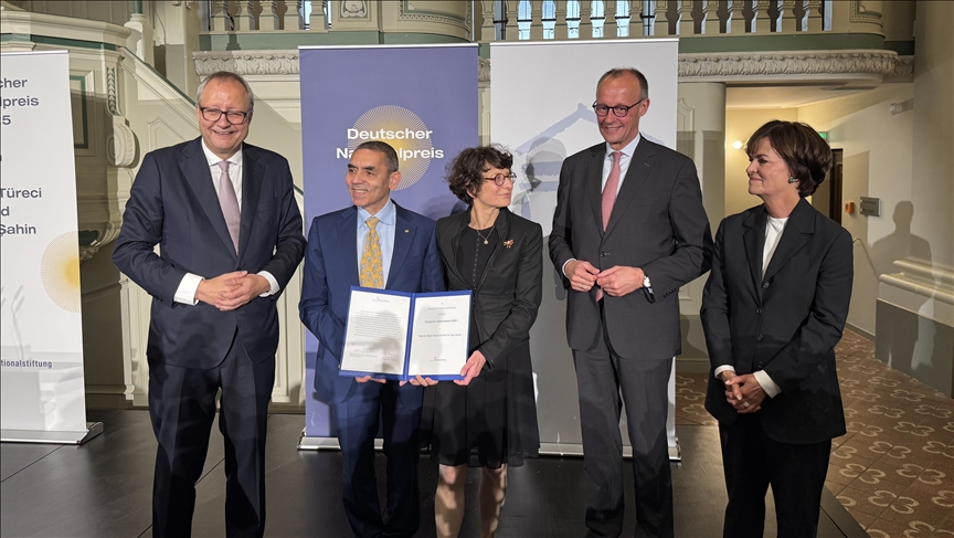 Modern tıbbın iki öncüsü olarak Şahin ve Türeci’ye “2025 Alman Ulusal Ödülü” verildiğini ifade eden Merz “Sürekli belirsizliğe doğru cesaretle ilerlemenizi onurlandırıyoruz” dedi.