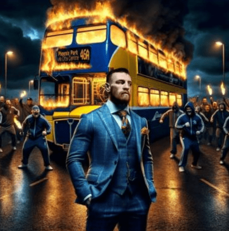 İrlanda diğer Avrupa ülkelerindeki gibi başarılı bir aşırı sağcı partiye sahip değil. Ancak geçen yıl kasımda Dublin’de çiftçilerin ayaklanmasında aşırı sağın sokak hareketine dönmesiyle yapay zeka da yüzünü gösterdi. İrlandalı aşırı sağcıların ürettikleri görselde en çok kullandıkları kişiyse eski dövüş sanatları yıldızı Conor McGregor. Mesela McGregor’un yanan bir otobüsün önünde dururken tasvir edildiği bir görsel var. Arkada yanan otobüs esasında şehir merkezinde araçların yakıldığı ayaklanmanın bir yansıması. Görseli ilk olarak İngiltere’deki aşırı sağcı Britain First grubu paylaşmış, sonra McGregor tweetleyip tepki görünce silmişti. Yine de şimdiye kadar 20 milyondan fazla görüntülenme aldı.