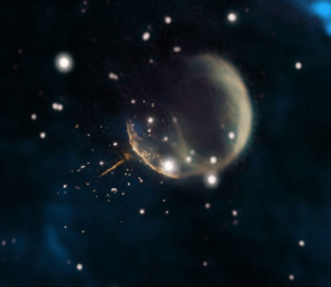 Bir süpernovadan saniyede 1.130 kilometre hızla uzaklaşan J0002 adındaki pulsar. Fotoğraf: NASA