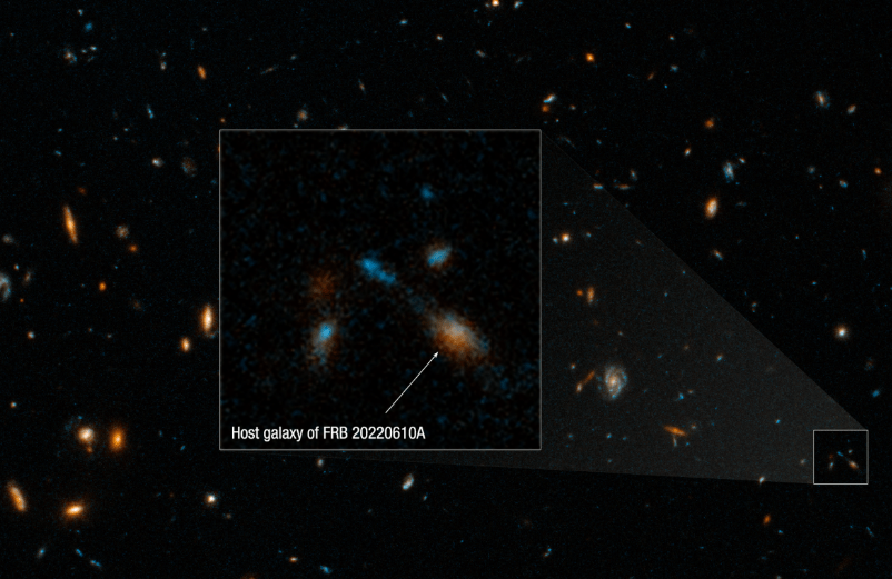 Şimdiye kadarki en uzak hızlı radyo patlaması FRB 20220610A. Fotoğraf: NASA, ESA, STScI, Alexa Gordon