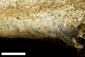Kaval kemiğindeki izler. Fotoğraf: Jennifer Clark