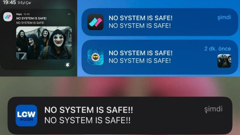 Kullanıcılara “NO SISTEM IS SAFE” mesajı gönderildi.