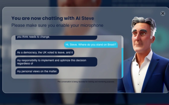 Ona göre AI Steve farklı olacak. Bir kere seçmenlerle yaptığı konuşmaları yazıya dökecek, analiz edecek ve bu politikaların yürürlüğe girmesini isteyip istemediğini belirletebilecek sıradan insanlara sunacak. Endacott ekibinin Londra’nın yaklaşık bir saat uzağındaki Brighton tren durağında işe gidip gelenlere ulaşmayı planladığını söylüyor. Bu kişilerden şehre gidip gelirken e-posta aracılığıyla kısa kısa siyaset anketleri doldurmalarını isteyecekler. Endacott oy kullanan kişilerin kendilerini etkileyecek politikalardan haberdar olup, bunların gerçekten geçmesini isteyip istemediklerini söyleyebilmelerini sağlayacak bir oy sistemine sahip olmalarının mantıklı olduğunu düşünüyor.
