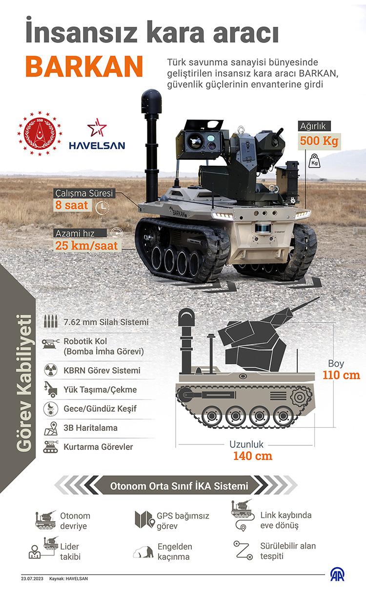 Türk savunma sanayisi bünyesinde geliştirilen insansız kara aracı Barkan, güvenlik güçlerinin envanterine girdi.