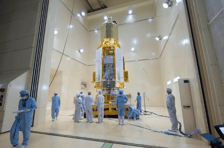 XRISM, Aralık 2022’de akustik testlerden geçerken. Fotoğraf: JAXA