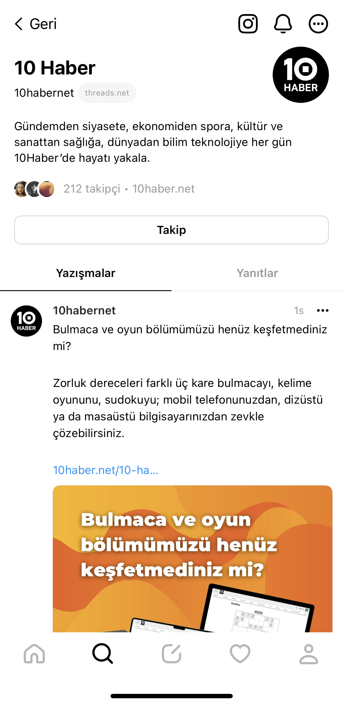 Türkiye olarak platformu sevgiyle kucakladık dememizde bir sakınca yok. İnternet söz konusu olduğunda, Türkiye’deki kullanıcıların tutkusu dünyada çoğu ülkeyi geride bırakıyor. Burada da hemen yerimizi aldık ve fikirlerimizi bir de burada paylaştık. Hatta şunu yaptık: Threads’te yaptığımız paylaşımı, story olarak Instagram’da paylaştık, ardından Twitter’a geçip Threads’le ilgili tartıştık. Yeri gelmişken 10Haber’i Threads’te de takip edebileceğinizi belirtip adresimizi vereyim: www.threads.net/@10habernet