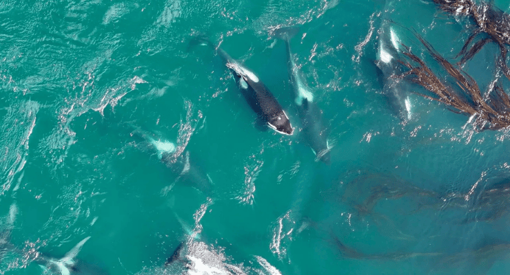 Araştırmacılar, insansız hava araçları kullanarak katil balinaları yosunları önce ısırarak kopardığını sonra da başka bir balinanın sırtına yerleştirdiği anları gözlemledi.