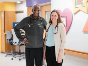Dr. Musunuru ve Dr. Ahrens-Nicklas, artık kilo almaya başlayan KJ bebekle.