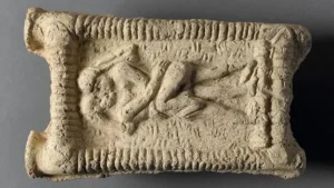 Mezopotamya’da M.Ö. 1800’lere dayanan kil modelde öpüşen bir çift. Fotoğraf: British Museum