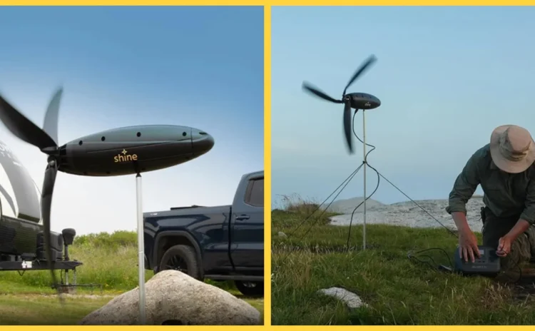 Kanadalı teknoloji girişimi Aurea Technologies güneş panellerine rakip olan ve sırt çantasına sığabilen taşınabilir rüzgar türbini Shine 2.0’ı tanıttı.