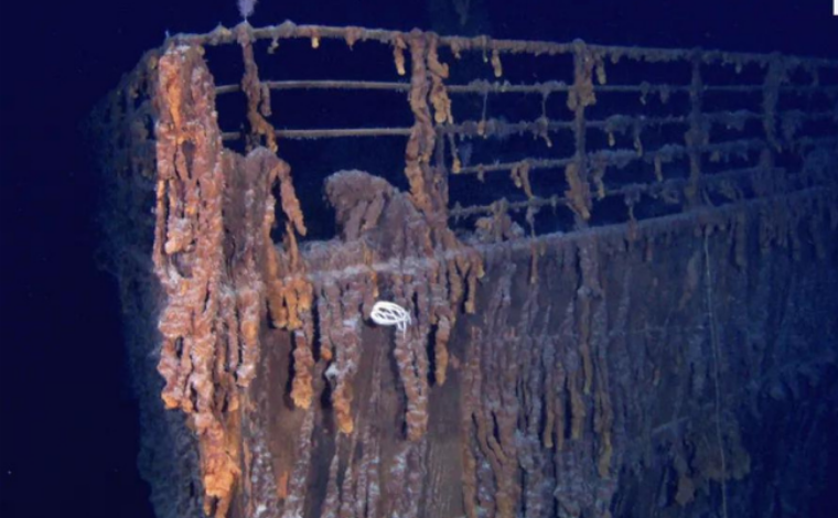 1997 yapımı filmdeki o meşhur sahne... Titanik enkazını görür görmez tanınmasını sağlayan Atlantik’in derin karanlığında yatan o meşhur burnudur. Enkaza yapılan yeni bir keşif dalışında geminin burnundaki (pruva) korkulukların önemli kısmının kaybolduğu anlaşıldı.