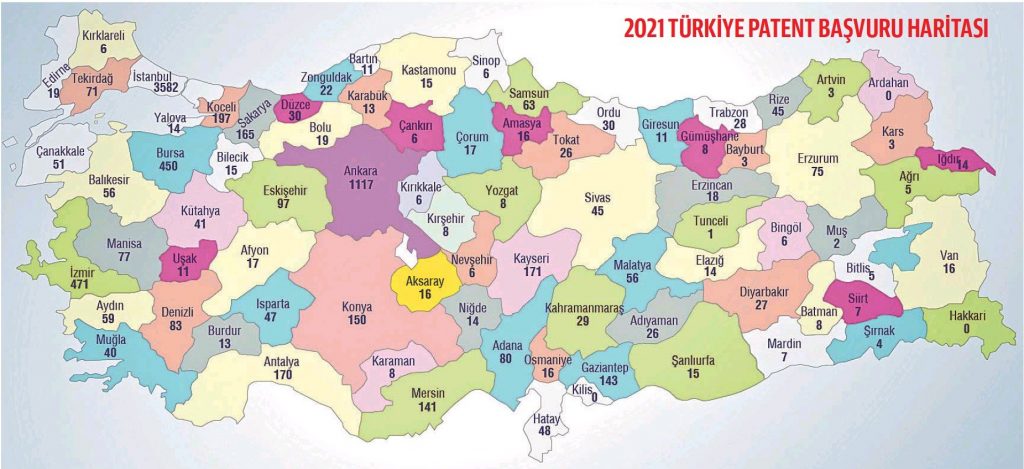 Türk Patent ve Marka Kurumu tarafından açıklanan 2021 yılı Türkiye marka ve patent başvuru verilerinin analizini yapan Destek Patent, 2021 yılında 79 bin 608 marka ve 3 bin 582 patent başvurusu ile rekorun İstanbul’da olduğunu açıkladı. İstanbul’dan sonra en çok marka ve patent başvurusu Ankara ve İzmir’den geldi. Yerli patent başvurularında, tıbbi ve cerrahi teçhizat ile ortopedik araçların imalatı en çok başvuru yapılan alan olurken, yerli patent başvurularının yüzde 11’i üniversiteler tarafından yapıldı. 2021 yılında Türk Patent ve Marka Kurumu’na 8 bin 439 patent, 4 bin 418 faydalı model, 176 bin 493 marka ve 59 bin 247 tasarım olmak üzere toplam 248 bin 597 yerli sınai mülkiyet başvurusu yapıldı. Yerli patent başvurularında yüzde 3, faydalı model başvurularında yüzde 24, marka başvurularında yüzde 13 ve tasarım başvurularında yüzde 41 artış gerçekleşti.