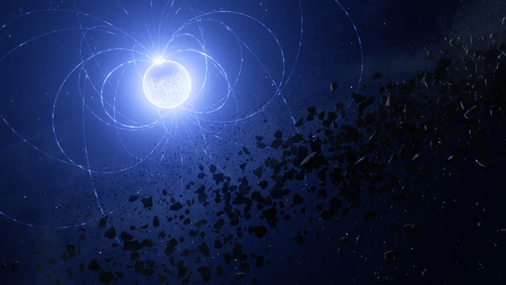 Gökbilimciler Şili’deki Avrupa Güney Gözlemevi’nin Çok Büyük Teleskobu’nu kullanarak Dünya’dan yaklaşık 63 ışık yılı uzaktaki beyaz cüce olduğu bilinen ölü bir yıldızı gözlemledi. Gözlem sırasında yıldızın yüzeyinde metalik bir iz olduğu görüldü. Araştırmacılar bunun yıldızın manyetik alanında tespit edilen bir değişiklikle ilgili olduğunu belirledi.