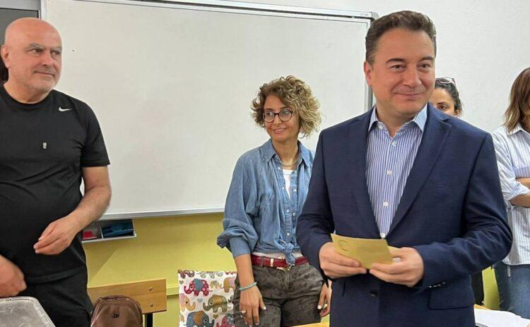 DEVA Partisi lideri Ali Babacan, eşi Ülkü Zeynep Babacan’la Ankara’nın Çankaya Türkiye Emlak Bankası Ortaokulu’nda 4572 numaralı sandıkta oy kullandı.