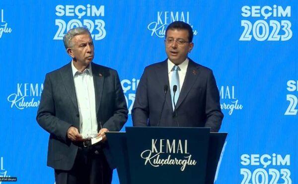 İstanbul Büyükşehir Belediye Başkanı Ekrem İmamoğlu ve Ankara Büyükşehir Belediye Başkanı Mansur Yavaş sandıkların kapanmasının ardından dördüncü kez kameralar karşısına geçti.
