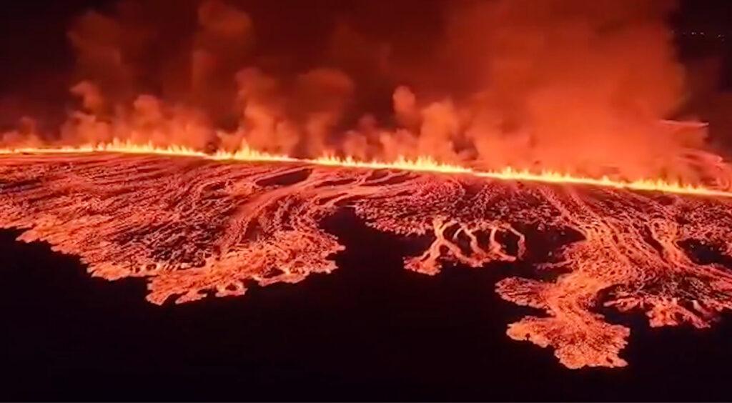 A volcano in Iceland erupted for the fourth time since December, spewing smoke and bright-orange lava into the air. An aerial video shot by Iceland’s Department of Civil Protection showed a long, glowing fissure streaking across the ground https://t.co/L8vPHODJ0G pic.twitter.com/pPfbLiX4JJ