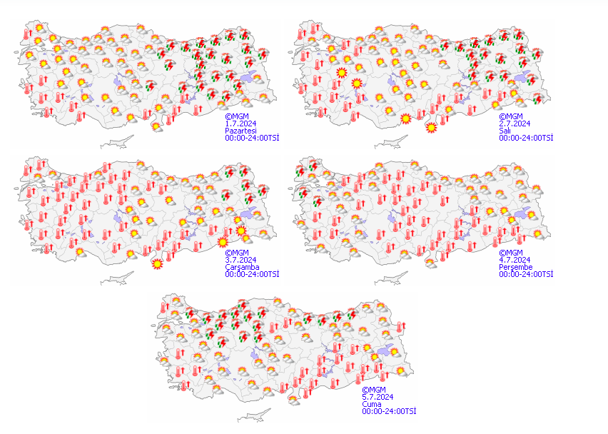 Meteoroloji’nin beş günlük hava tahmin haritası