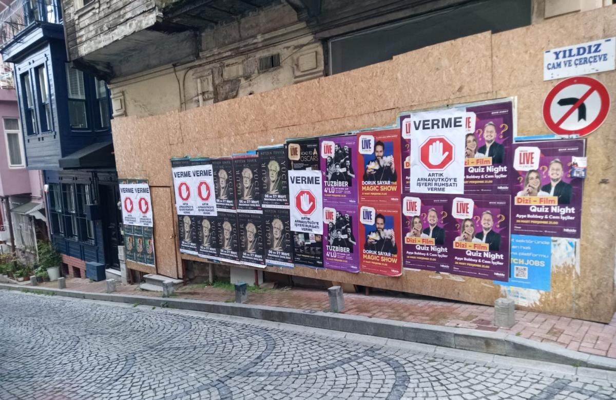 Sorunun cevabı Arnavutköy’de kısa bir tur atan herkesin evlerin pencelerinde ya da duvarlarda görebileceği bir afişte yazılı: “Verme. Artık Arnavutköy’e iş yeri ruhsatı verme.” Dernek, mahalleyi Beşiktaş Belediyesi’nden korumaya çalışıyor anlayacağınız.