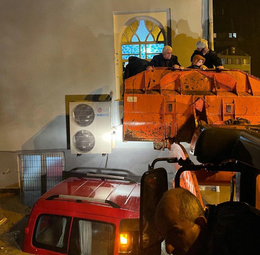 Yeniyol Mahallesi’ndeki Yeniyol Camii’nin zemin katını su bastı, avlu ve çevresi de suyla kaplandı. Cami içinde mahsur kalan cemaatten bazı kişiler kendi imkanlarıyla dışarı çıkarken bazıları da pencerelere uzatılan ilçe belediyesine ait iş makinelerinin kepçesine alınarak güvenli alana götürüldü.