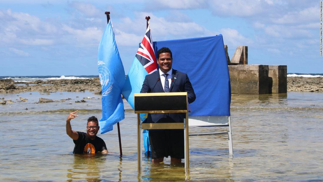 Bir çok uzmana göre, ‘Tuvalu, 80 yıl içinde tamamen su altında kalabilir”. Buna dikkat çekmek için, Tuvalu Dışişleri bakanı Simon Kofe, 2021 yılının Kasım ayında İskoçya’nın başkenti Edinburgh’de gerçekleşen iklim zirvesine paçalarını sıvayıp girdiği denizden seslenmişti. Bakan, dünya devletlerine iklim krizine ”somut öneriler” bulmaları için seslendiği videoda konuşmasını denize kurduğu kürsüden konuşma yapmıştı.