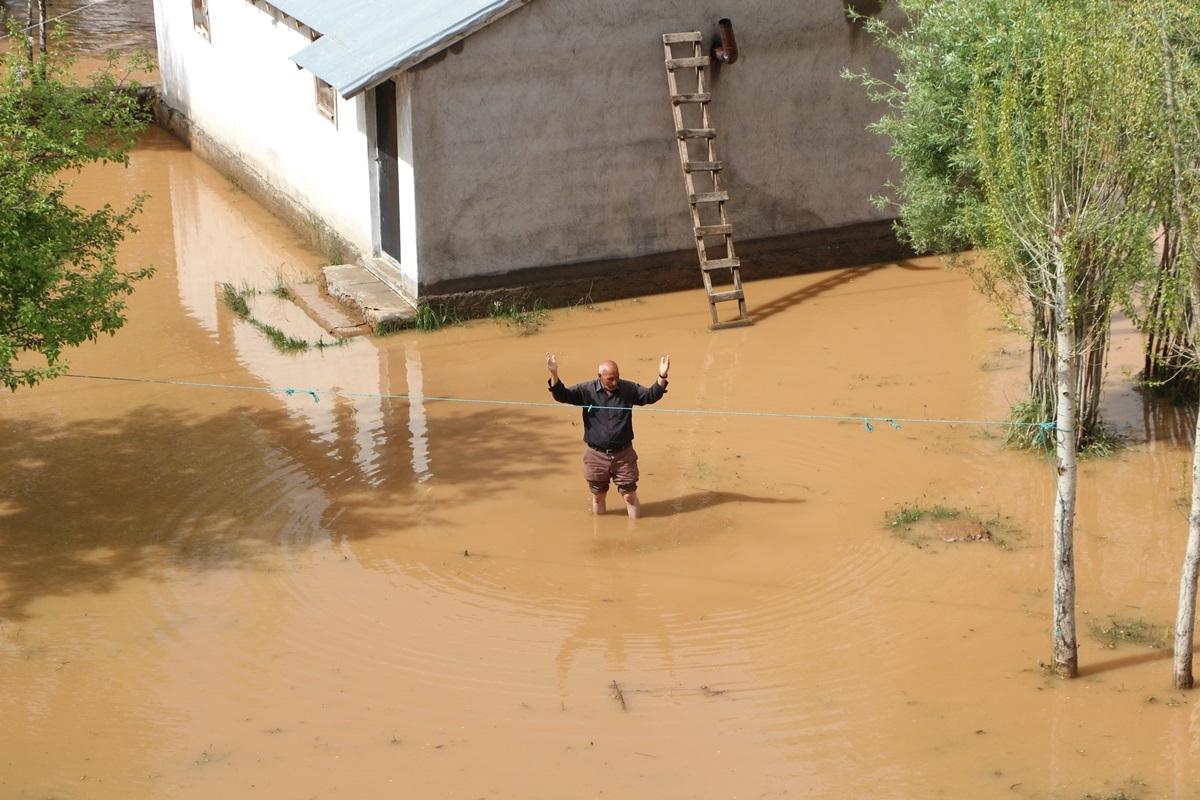 Bingöl’de sağanak yağış nedeniyle bazı evler ve ahırlar su altında kaldı.