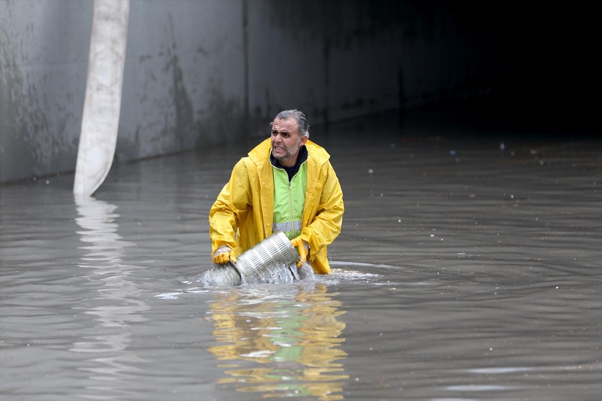 Ankara Büyükşehir Belediyesi ekipleri, su basan alt geçitte tahliye çalışması yaptı.