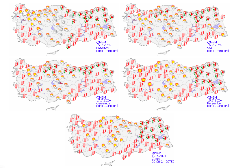 Meteorolojinin beş günlük hava tahmin haritasına göre bu hafta İstanbul yanacak. Gökdelenlerin altındaki megakentte hissedilen sıcaklık 40 dereceyi bulacak. Doğu Karadeniz içinse sel uyarısı var.