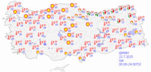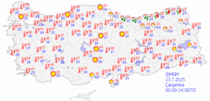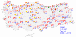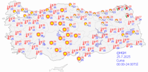 Zaten mevsim normallerinin epey üzerinde sıcak olan hava bu hafta Basra körfezi üzerinden gelen yeni alçak basınç sistemi nedeniyle daha da çekilmez hale gelecek. Rüzgar fön makinesinden çıkar gibi sıcak esecek. Orman yangınlarına ve sağlık sorunlarına dikkat!