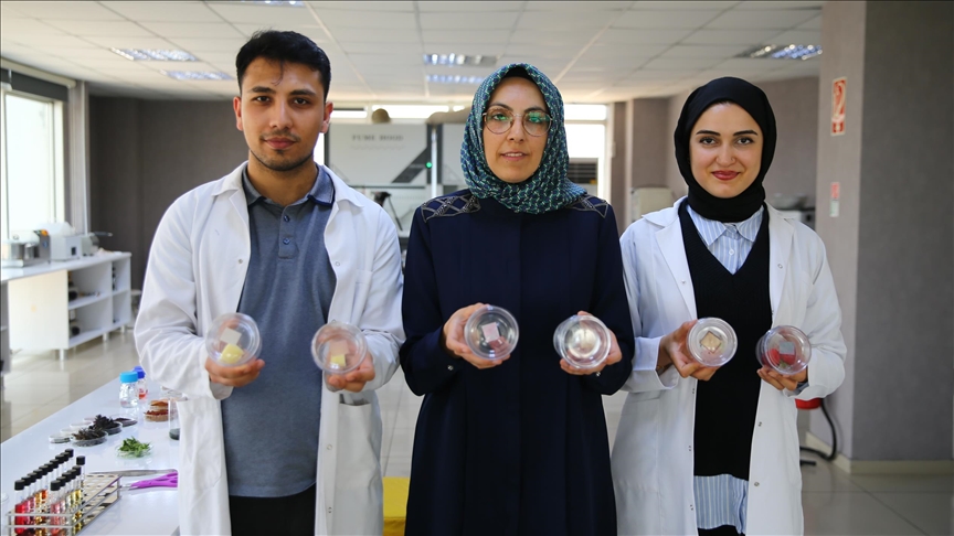 Çalışma kapsamında, kırmızı yosundan elde edilen pigment ve biyoplastik, birbirine entegre edilerek renk değiştiren “akıllı etiket” geliştirildi.