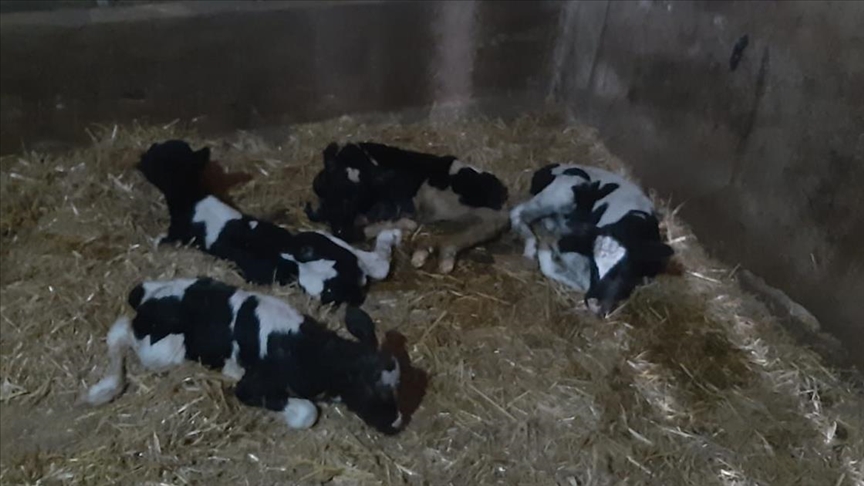 Doğumun ardından buzağılardan birinin hayatını kaybettiği, diğerlerinin sağlık durumunun iyi olduğu öğrenildi.