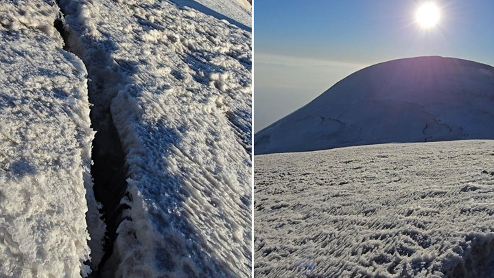 Türkiye’nin en yüksek dağı olan ve 5 bin 137 metre rakımıyla dikkat çeken Ağrı Dağı’nın zirvesinde, buzul tabakasında oluşan çatlaklar ilk kez detaylı şekilde görüntülendi. Zirvedeki çatlaklar, küresel ısınma ve iklim değişikliği etkilerine dair önemli bir işaret olarak değerlendiriliyor.
