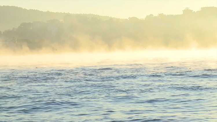 İstanbul Boğazı’nda sabahın erken saatlerinde deniz yüzeyinden buhar yükseldi.