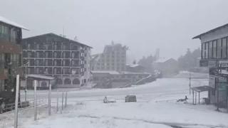 Yoğun sis ve fırtınanın da etkili olduğu birinci ve ikinci oteller bölgesinde görüş mesafesi beş metrenin de altına düştü. Yağışla birlikte kayak merkezinin zirvesi ve kayak pistleri karla kaplandı.