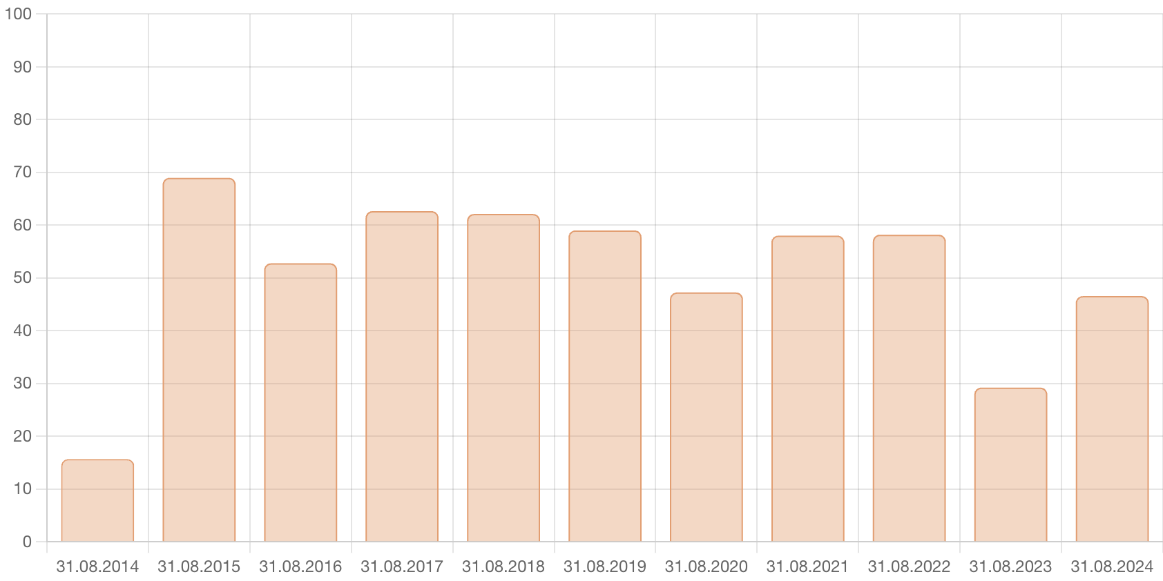 31 Ağustos 2023’te yüzde 29.22 olarak ölçülen doluluk oranı bundan tam bir sene sonra yüzde 46.56 olarak ölçülmüş. Aradaki fark yüzde 17.34.
