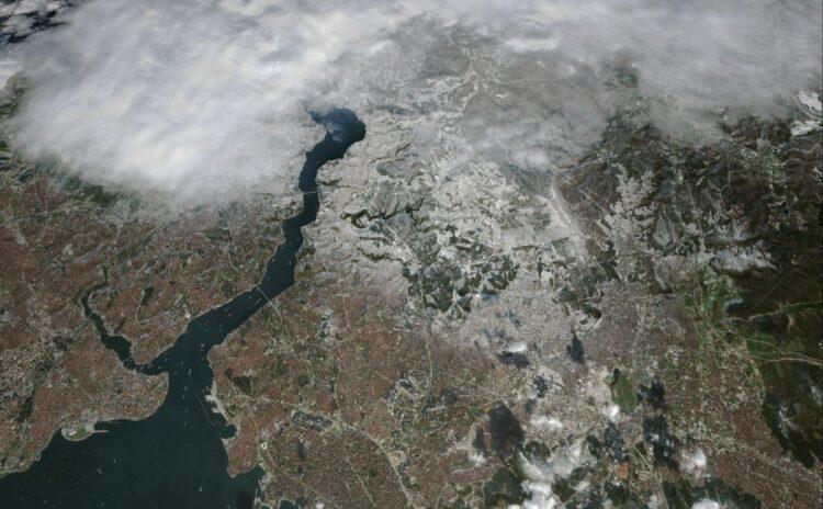 İstanbul, yılın ilk günü çok tuhaf bir meteorolojik olay yaşadı. Kentin bir bölümünde saatler süren bir kar fırtınası yaşanırken mega şehrin geri kalanında hava günlük güneşlikti. Bu ilginç meteorolojik olay uydu fotoğraflarına da yansıdı.