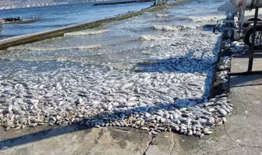 İzmir Körfezi’nde kıyıya vuran ölü balıklar