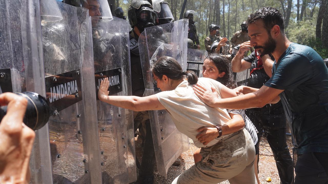Kılıçdaroğlu’nun ormana girmesine izin verilirken barikatı aşıp kesim alanına girmeye çalışan çevrecilere jandarma biber gazı ve copla müdahale etti, gözaltına alınanlar oldu.