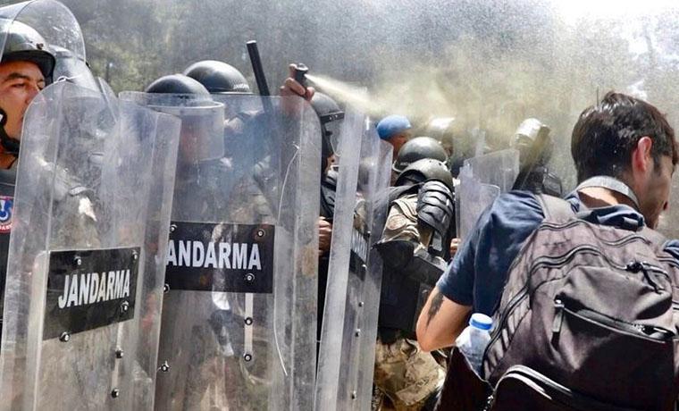 Fotoğraf: Hazar Dost / Kılıçdaroğlu’nun ardından kesim alanına girmek isteyenlere jandarma müdahale etti.