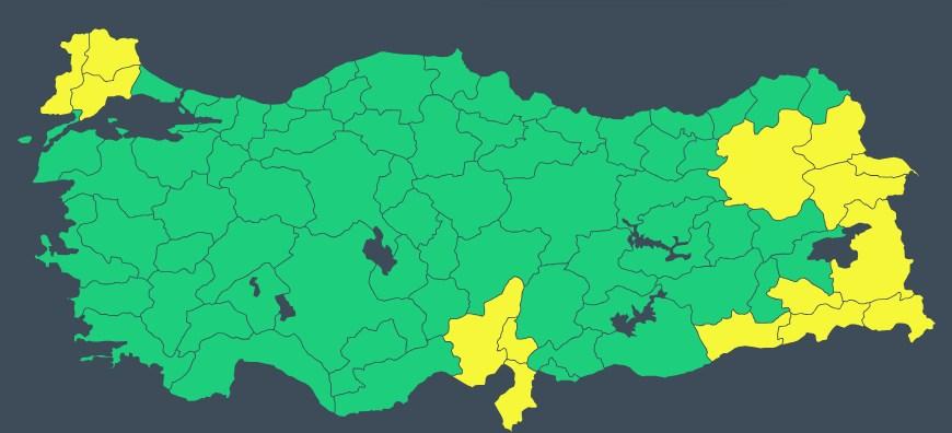 Meteoroloji Trakya ve çoğunlukla Doğu Anadolu illeri için sarı kodlu uyarı yayınladı. Bu illerde şiddetli yağış ve fırtına bekleniyor.