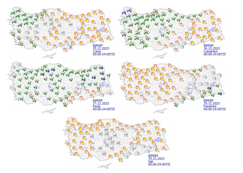 Meteoroloji Genel Müdürlüğü’nün beş günlük hava durumu tahmini.