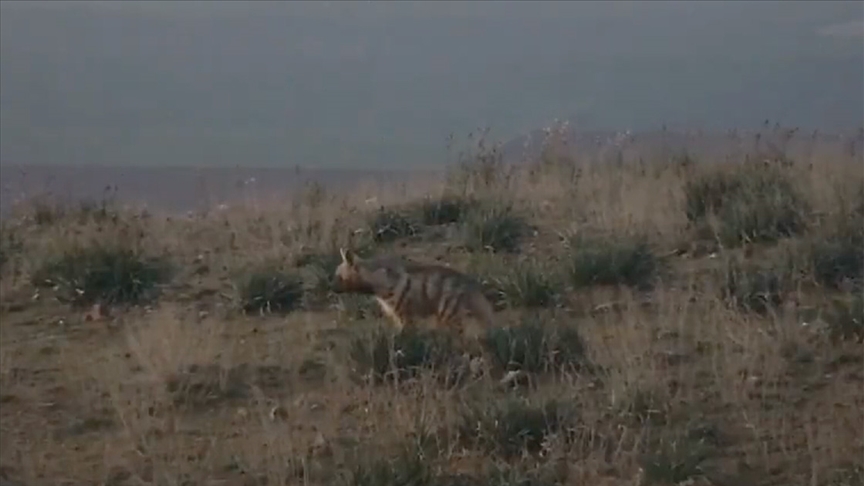 Hatay'da nesli tükenme tehlikesi altındaki çizgili sırtlanın görüntüsü kaydedildi.